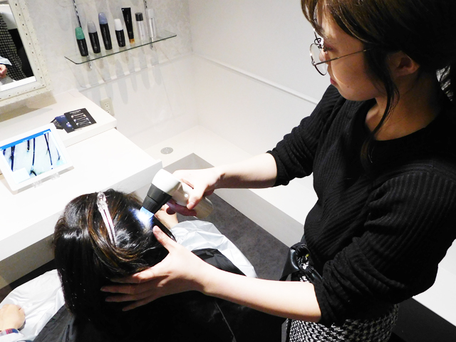頭皮の状態を専用のマイクロスコープでチェック。